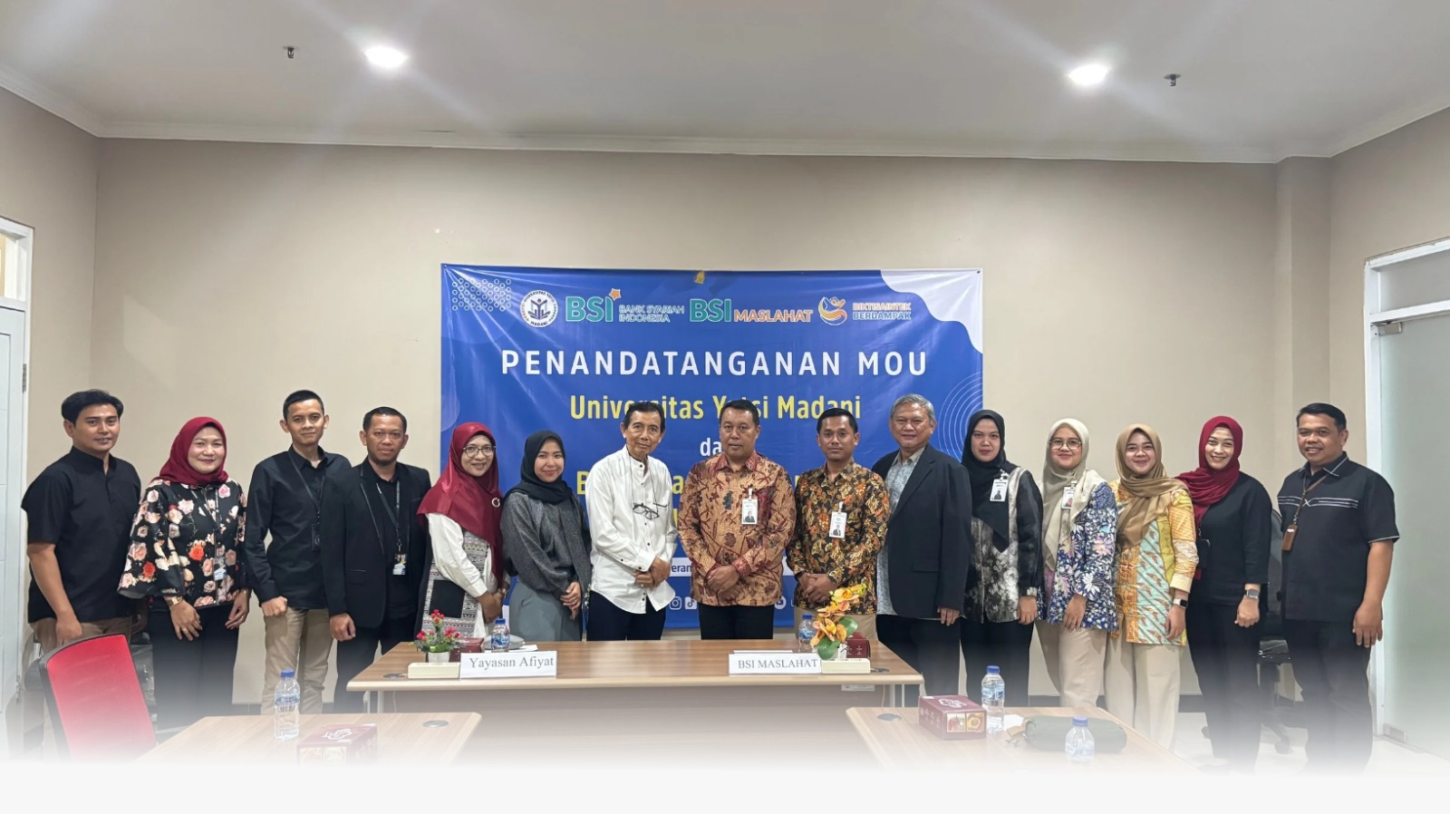 Tangerang, 1 Oktober 2025- Universitas Yatsi Madani (UYM) memperkuat komitmennya dalam mengembangkan pendidikan tinggi berbasis creative, collaborative dan professional dengan menjalin kerja sama strategis bersama Bank Syariah Indonesia (BSI) dan BSI Maslahat. Penandatanganan Nota Kesepahaman (MoU) ini berlangsung pada Rabu (1/10) di kampus UYM Kota Tangerang.